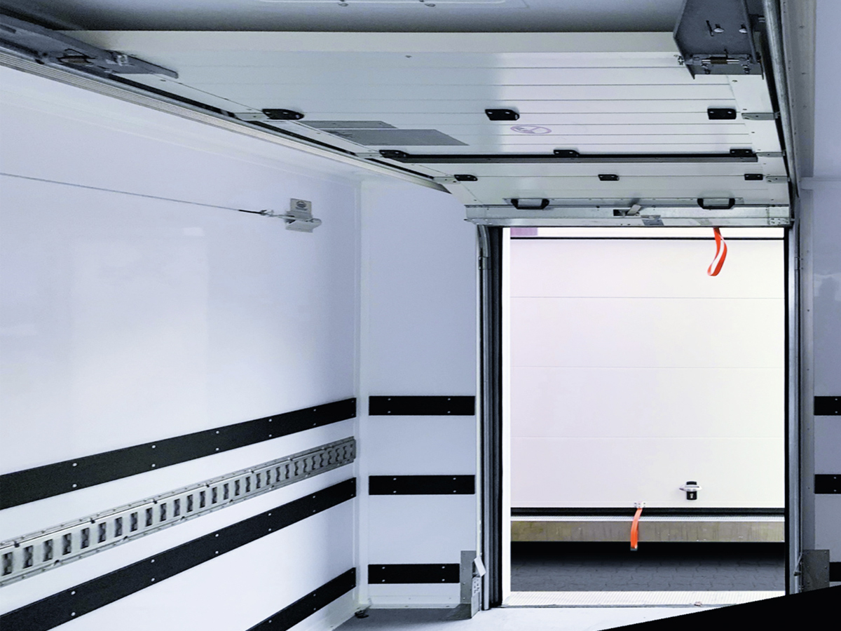A Code XL-certified design has been developed for the particularly demanding transport of heavy objects. The normative requirements of DIN EN 12642 for the load safety of the door up to 8.1 tonnes are met.